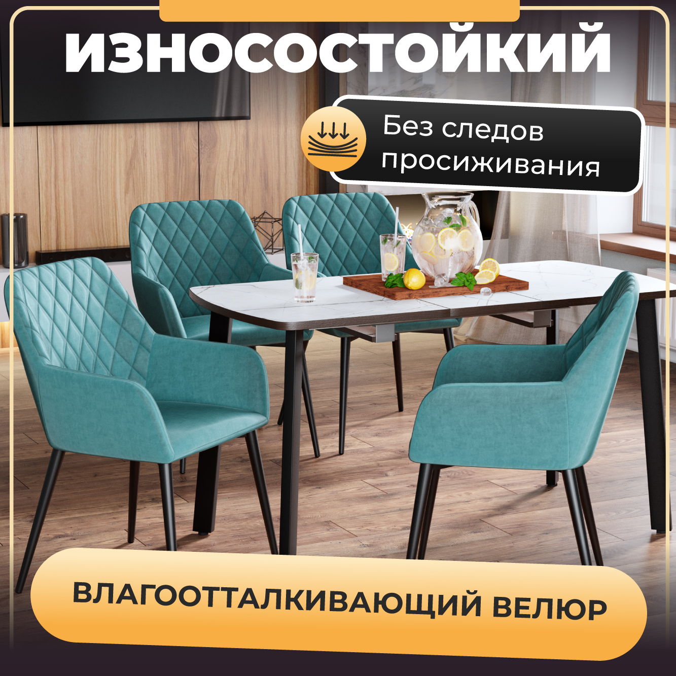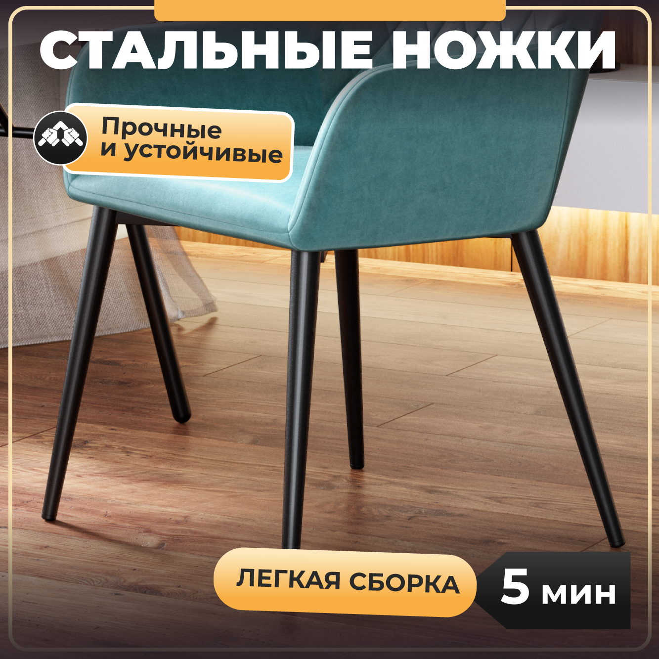 Чтобы всё это стало реальностью, в конструкции стула не может быть компромиссов. В основе сиденье из гнуто-клееного шпона массива берёзы. Без полостей в спинке (как это иногда бывает в других стульях).Сверху 3-сантиметровый слой первичного мебельного поролона, который исключит следы просиживания даже через несколько лет. И венчает конструкцию бархатный премиум-велюр с эффектом «антикоготь». Домашние питомцы не порвут любимое кресло, а практически любые пищевые загрязнения легко удаляются влажной тряпочкой в мыльном растворе. Кресло покоится на металлических ногах из стали холодного проката (что добавляет +20% к прочности), покрашенных порошковым методом в черный матовый муар, на котором незаметны мелкие царапины и вмятины.